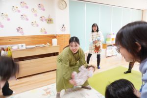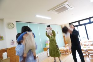 歌に合わせて、前に出ているお友だちの真似をする遊びです![]()