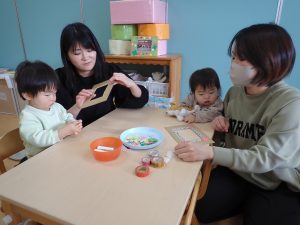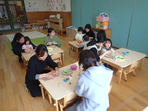 保護者の方同士や子どもたち同士の関わりも増え、子どもたちが一緒に遊ぶ姿が見られたり、保護者の方同士で子育てについてお話をされたりと、和やかな雰囲気で、毎月行うことができました![]()