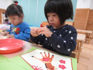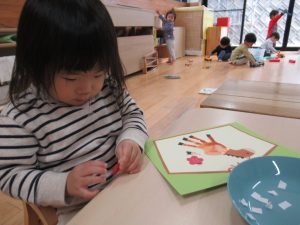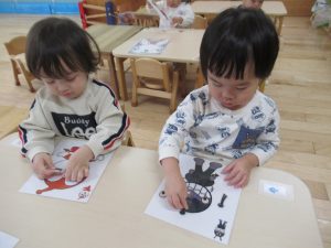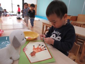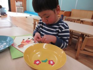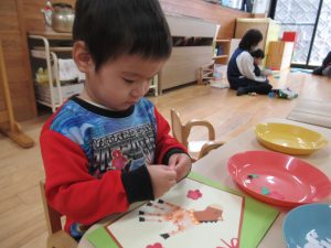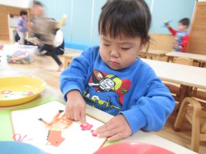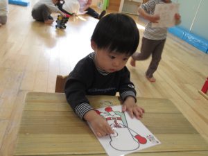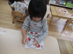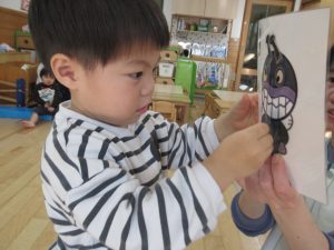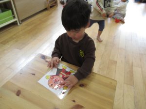 目はどこかな?鼻はどこかな?と考えながら、アンパンマンや動物の顔を作ってました