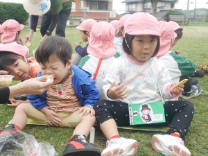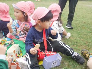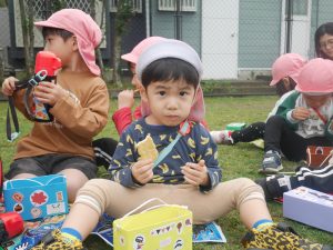 今回の遠足では、予定していた公園が急遽使えなくなり、違う公園に変更するというハプニングもありましたが、先生の説明に、泣いたり怒ったりする子どもはいませんでした![]()