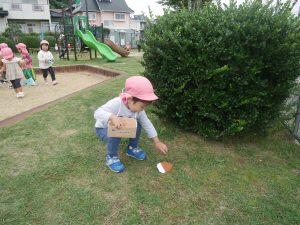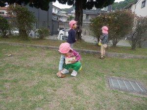 先生が、公園にどんぐりとキャンディー🍬を隠すよ~![]()