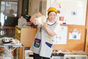 給食室の先生に「お願いします」と元気よく渡すことができました