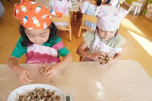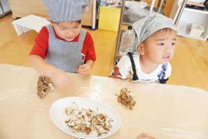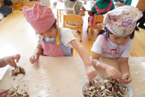 きのこが苦手なお友だちも少し食べようとする姿が見られました
