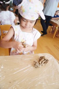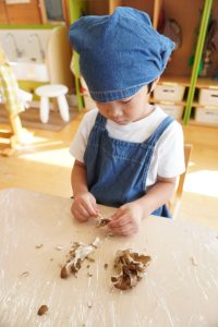 観察が終わった後は、スープに入るきのこを手で小さくさきました🍄