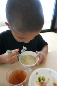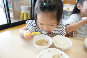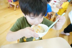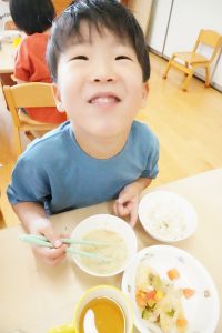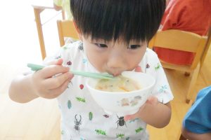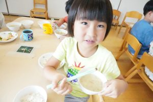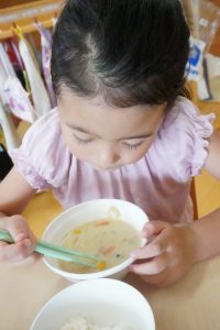 クッキングしている時はくさかったきのこがスープだとおいしくなってるという発見をしたお友だちや、「まだ手がきのこのにおいがする」というお友だちもいました