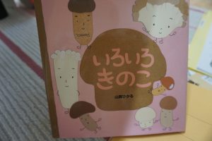 まずは絵本『いろいろきのこ』を先生に読んでもらい、きのこにはたくさんの種類があることを知りました