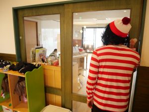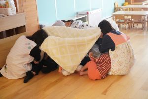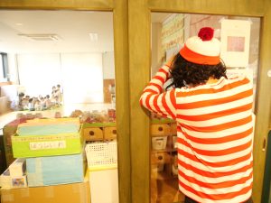 保育室を覗く不審者に顔を見られないよう隠します🙈