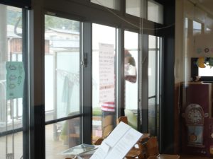 朝の会をしているにじぐみのテラスに不審者が現れ・・・