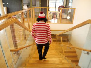 一階に降りる不審者・・・(ウォーリー?)