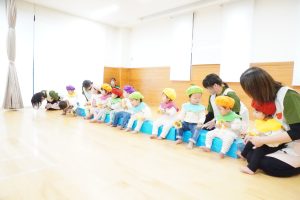 先日、お部屋で曲をかけると子どもたち同士で列車になって、そのままお部屋のパック椅子に「す~わった!」と言いながら座っていました🫢✨
