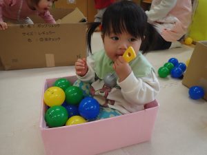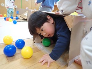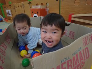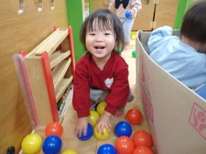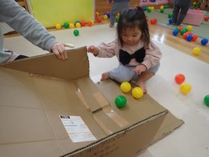 先日、ダンボールとたくさんのボールプールであそんでとっても楽しそうだったのでその様子をお伝えします![]()