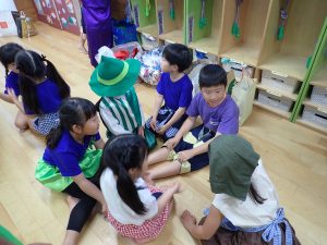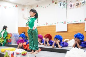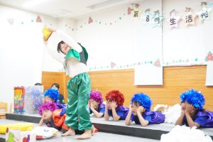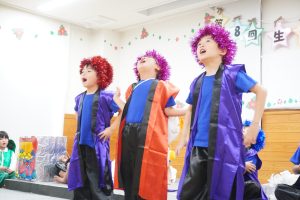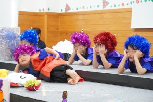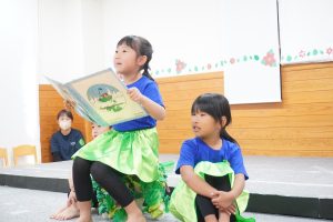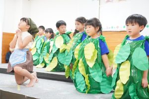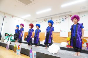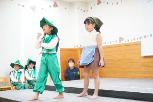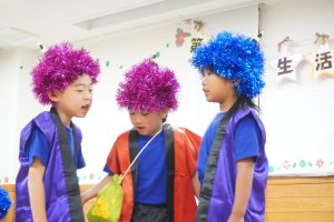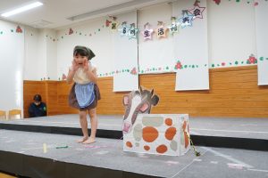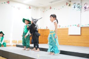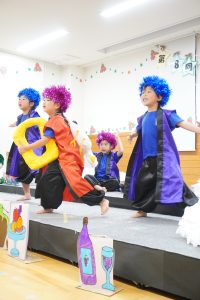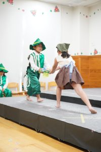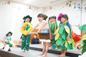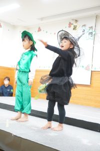 日に日に子どもたちは自分の出番や、たくさんのセリフを覚え、歌って踊れるようになり、小道具の出し入れまでできるようになっていきました。