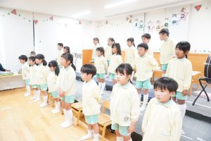 はじめの言葉を言い、保育園最後の生活発表会が始まりました🎀