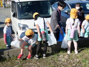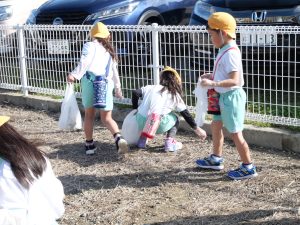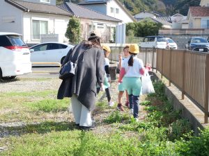 お家の方たちとタッチをした後、ごみ拾いに出発![]()
