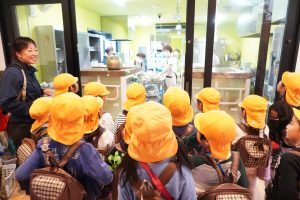 出発前に、お弁当を作ってくれた給食の先生にご挨拶😄