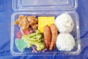 リュックにお弁当を入れて、九州産業大学まで歩きます
