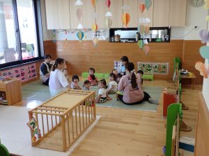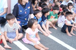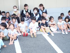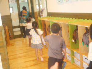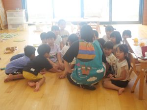 子どもたちは、先生のところへ集まり、静かに話を聞きます。