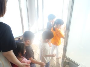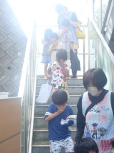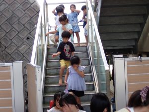 3.4.5歳児は2階から非常階段を降りて駐車場へ・・・