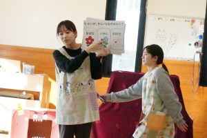 姿勢や食べ方、食べ物を落とすのはよくないよ!と教えてくれました。