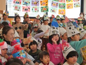 全園児が2階に集まって、豆まきの由来について学びましたよ~!