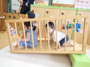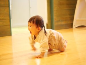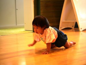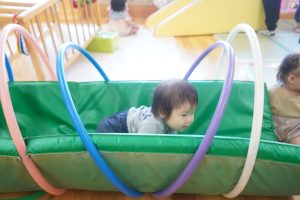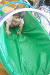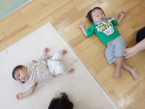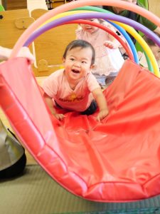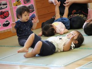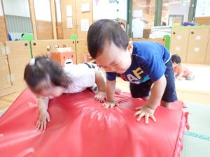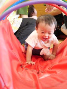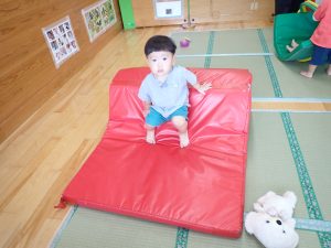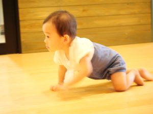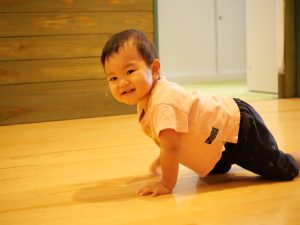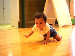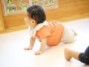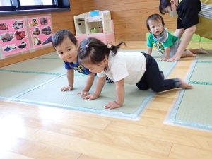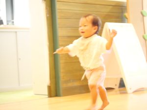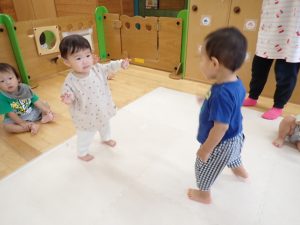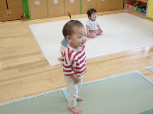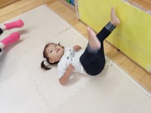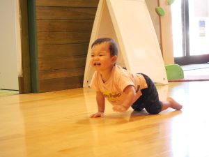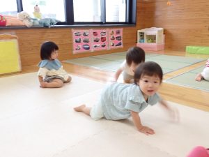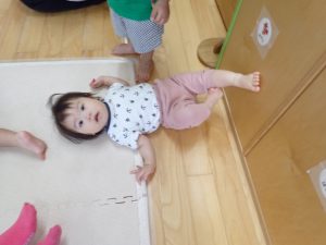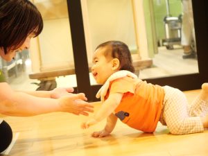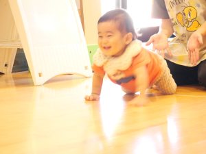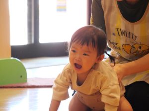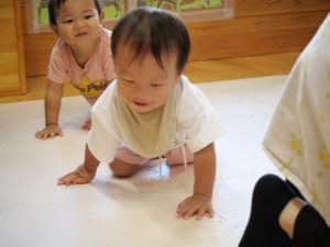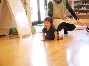今日は、ハイハイの気分だったようで、喜んでハイハイして先生のところへ![]()