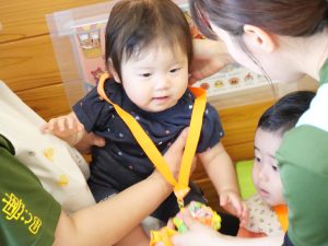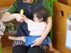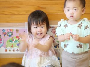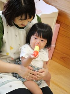 👶「・・・・」だったのに、今では笑顔で「は~い」とお返事をしてくれます![]()