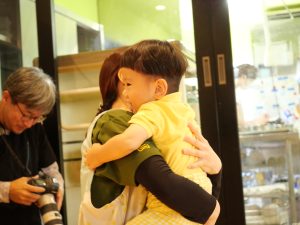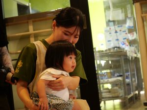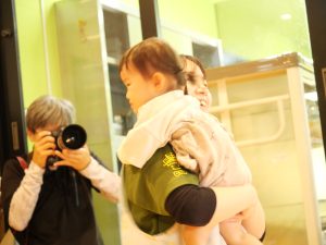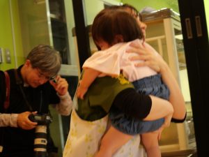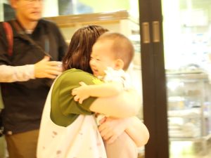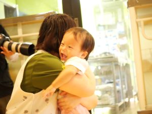 途中までにっこりでしたが、たくさんのお客さんに緊張したのか、大号泣![]()