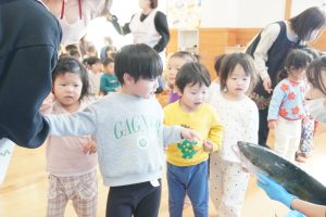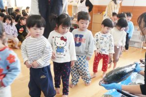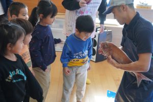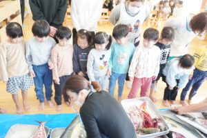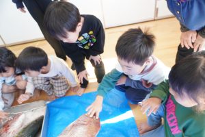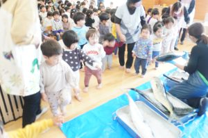 初めての魚の解体ショーを楽しみに登園してきました![]()