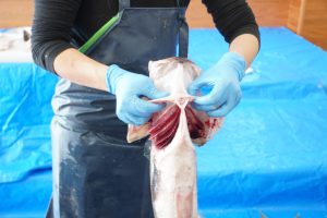 「うろこがある魚は、道具を使って取ってるんだよ」