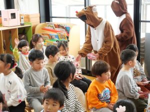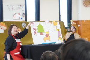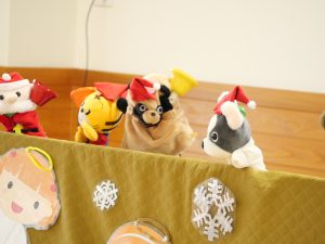 続いては、パネルシアター『森のクリスマス』です🐰🦒🐊
