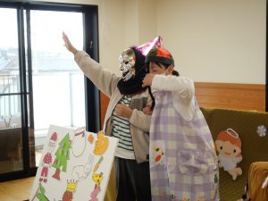 香椎しもばる保育園の先生たちにも、サンタさんから面白い?被り物のプレゼントが届きましたよ😊