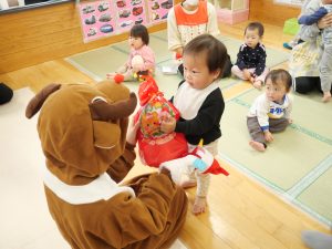 未満児の保育室にもサンタさんが来てくれましたよ![]()