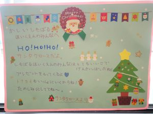一週間ほど前には、サンタさんからお手紙も届き、サンタさんが来てくれるのを、みんな楽しみにしていました![]()