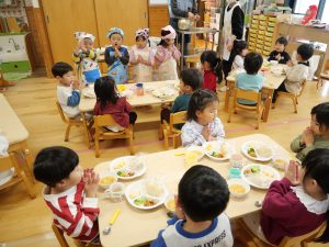 給食は、誕生会&クリスマス会の特別メニュー![]()