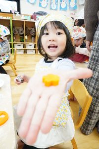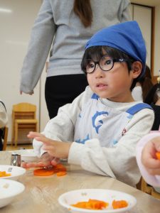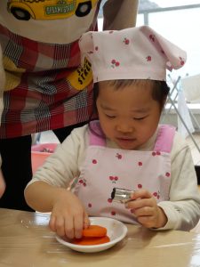 2月のクッキング ~冬野菜の紹介と人参の型抜きとピザトースト作り~