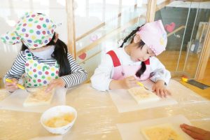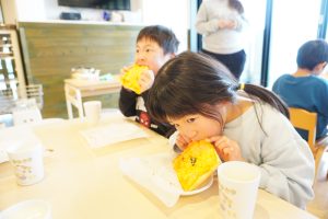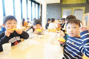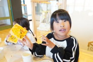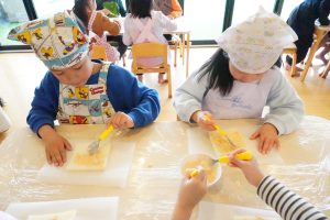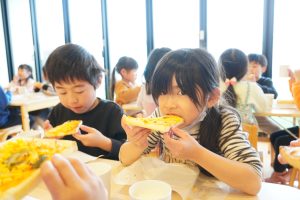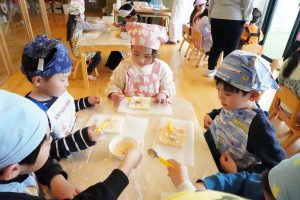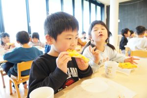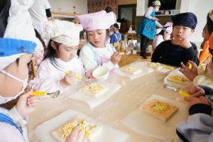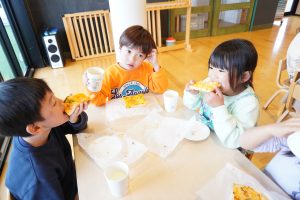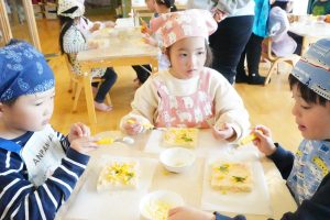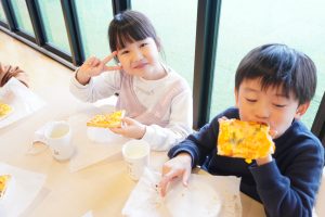 みんな自分たちで作ったピザトーストをおいしそうに食べていました