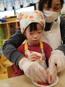 意外と手の力が要る様子で一生懸命型抜きを頑張ってくれていました!(^▽^)/