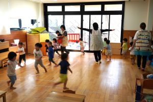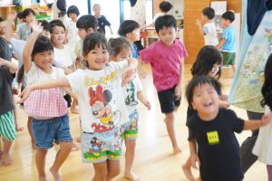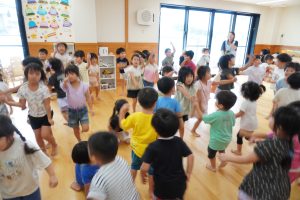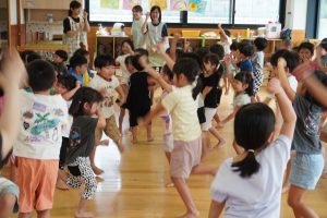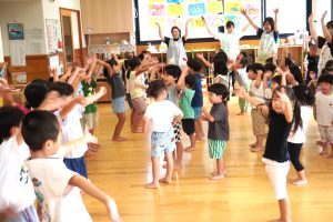 最後は運動会で披露した遊戯を年齢関係なく、
