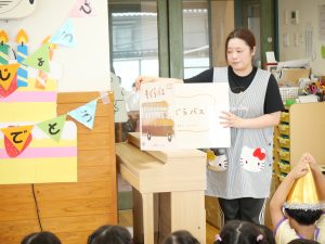 次は大型絵本「もぐらバス」の読み聞かせのプレゼントです🎁